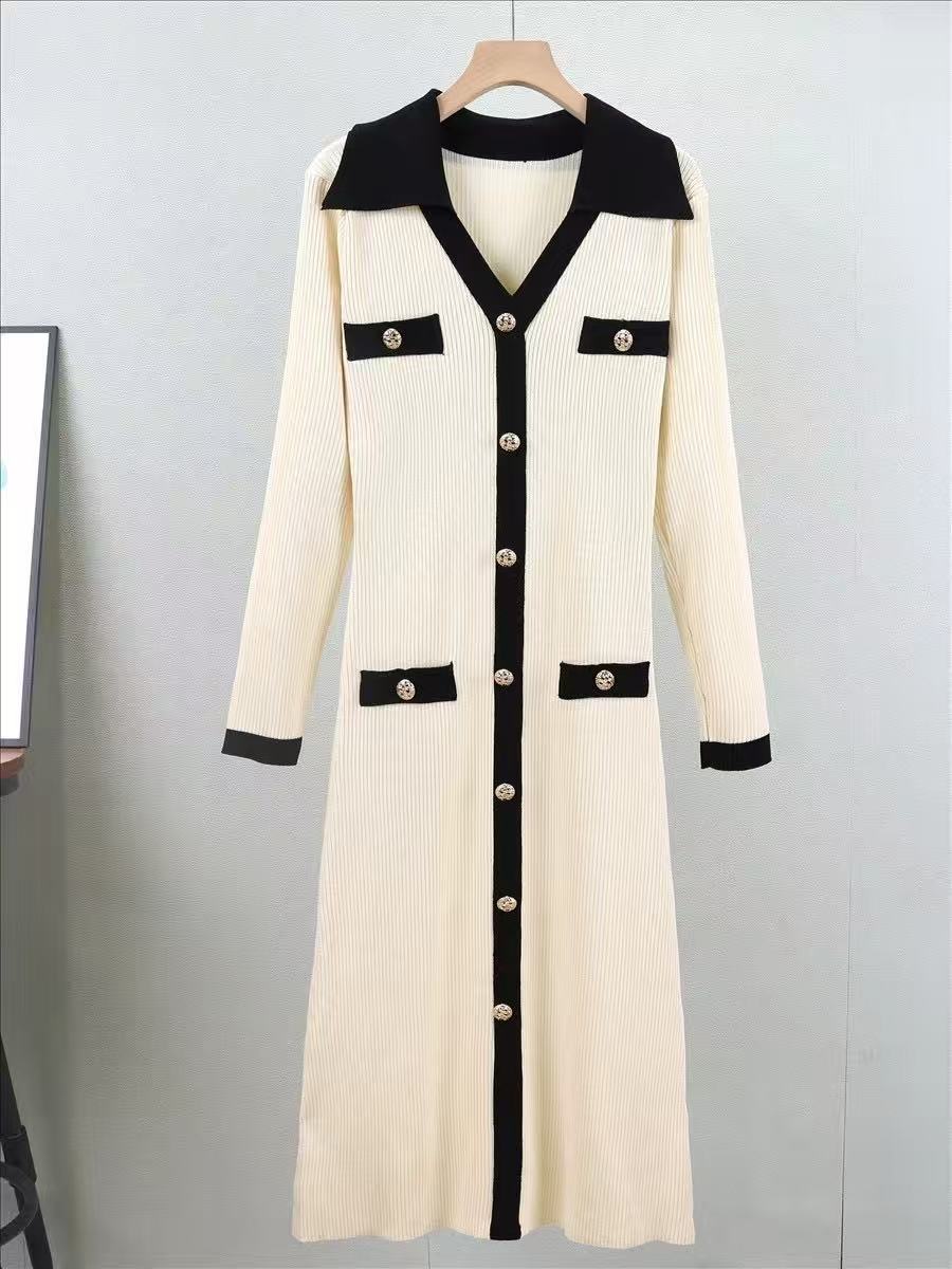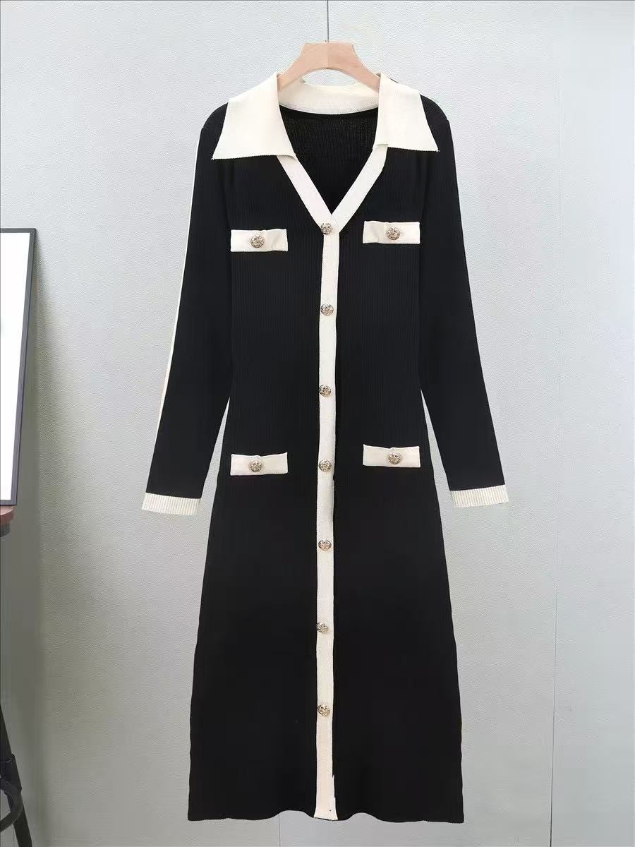 成为第一个“Contrasting color lapel knitted dress” 的评价者