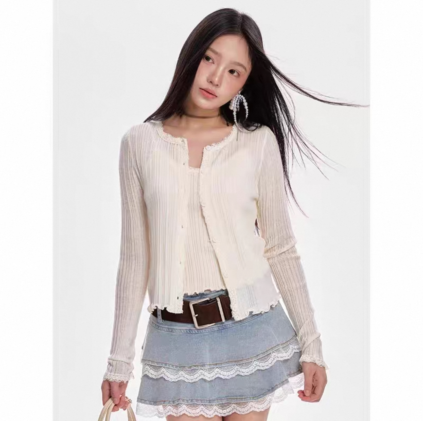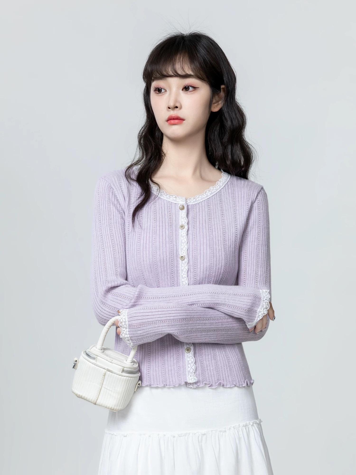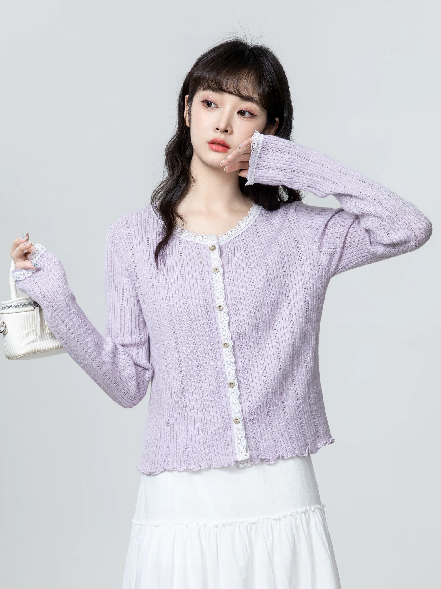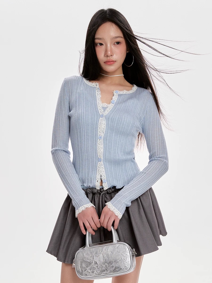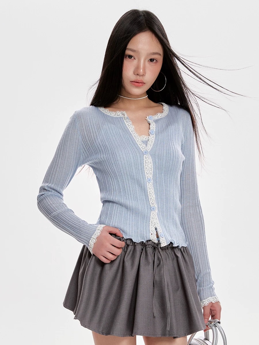 With “light, sweet and exquisite, reshaping the style of daily wear” as the core of the design, the slim texture of pit strip knitting is integrated with the soft fabric of lace stitching.