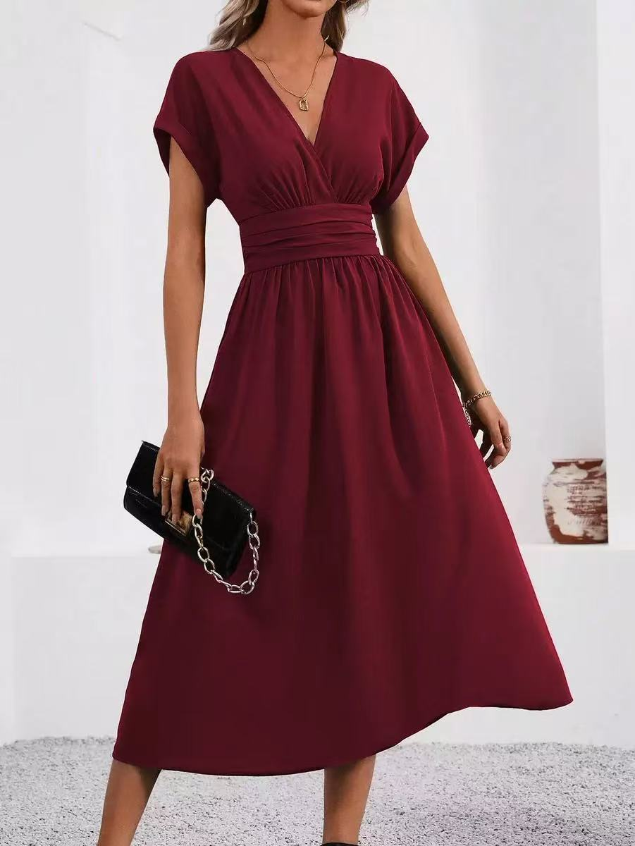 Adhering to the simple and elegant design logic, with the classic V-neck and waist cut as the core, it creates a real-wear item suitable for diverse formal occasions.